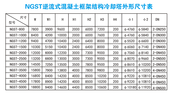 ◆ 工業(yè)型方形鋼筋混凝土冷卻塔主要參數(shù)